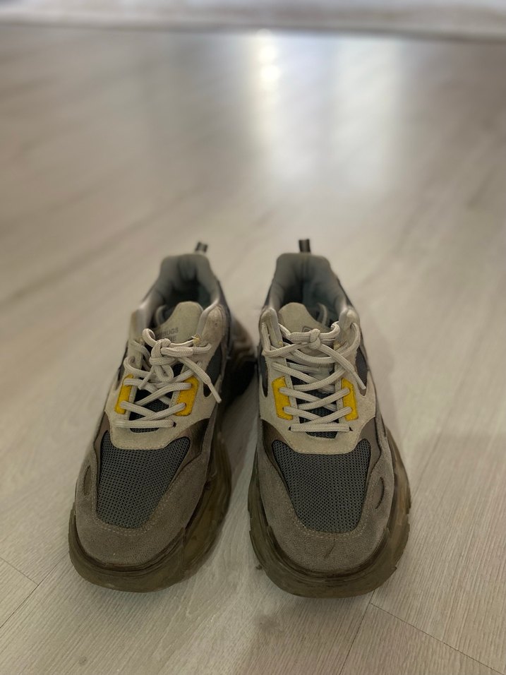 Gri renkte, sokak stili ve kauçuk tabanlı kadın sneakers. İnce topuklu tasarımıyla trend ve rahat bir görünüm sunar. Spor için uygundur.