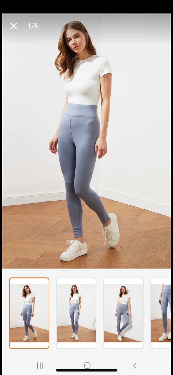 Gri renkte, normal boy tayt, yumuşak sentetik kumaştan, spor ve gündelik kullanım için uygun, beli incelten görüntüsü var