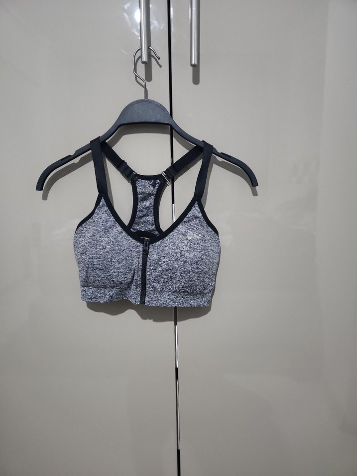 gri sporcu sütyeni. Ön fermuarlı ve sırtı yarışçı askılı, streetwear tarzında. ️♀️ az ve temiz kullanıldı kusursuz defosuz