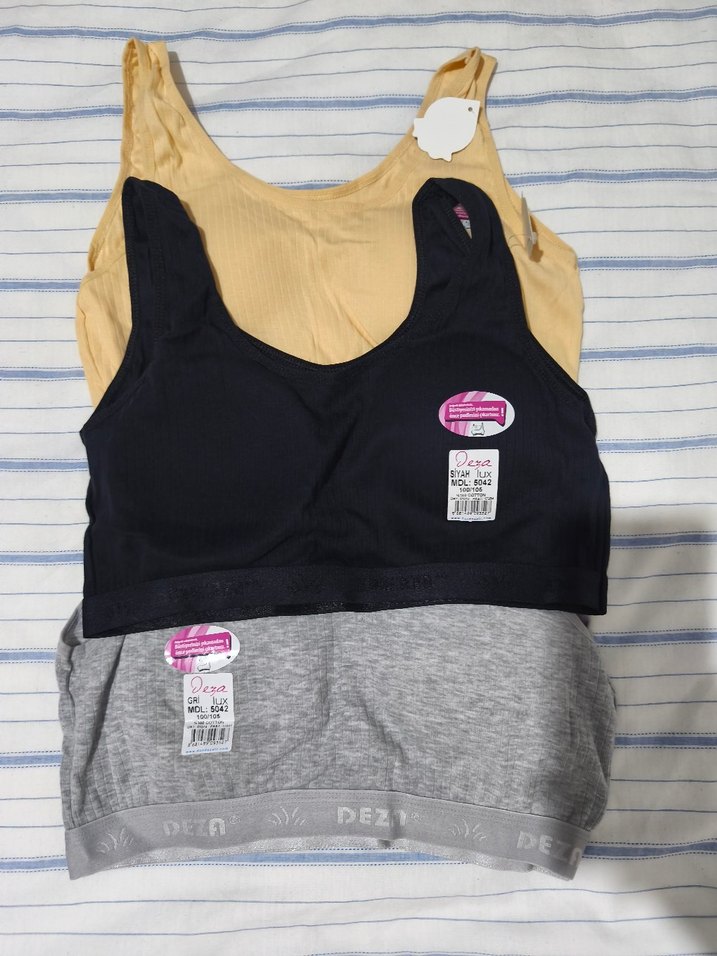 Gri, siyah, krem renkte, desen içermeyen ve midi boyda sporcu sütyeni. Hiç kullanılmadı etiketli sorunsuz. Bedeni olmadığı için satıyorum. Tekli fiyat 200
