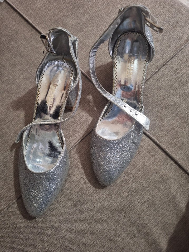 Gri renkli, tokalı ve simli yapısıyla düğün ve özel günlere uygun, modern tasarımlı stiletto topuklu abiye ayakkabı. 34 Numara