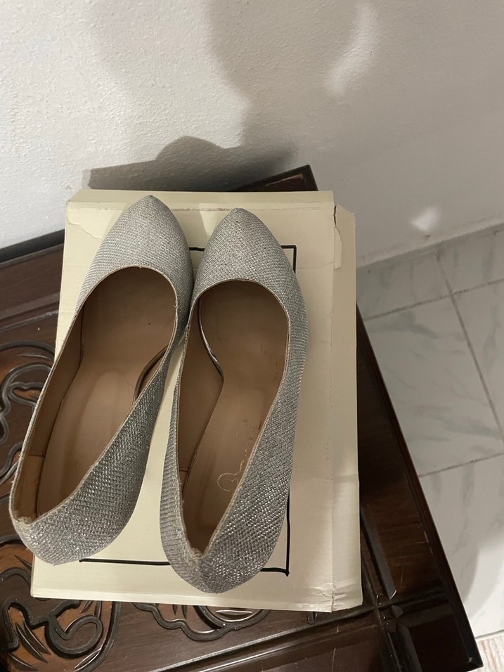 Gri stiletto topuklu, tokalı ve kauçuk malzemeden yapılmış kadın ofis ayakkabısıdır. Modern klasik tarzda, desen içermeyen ve minimalist şıklık sunar. Ürün defosu üçüncü fotoğrafta belirtilmiştir