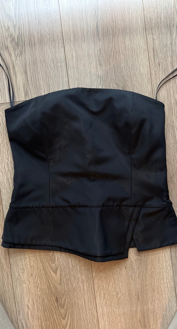Fermuarlı ve kısa kesim gri straplez bustiyer, şık ve avant-garde gotik tarz sunar.