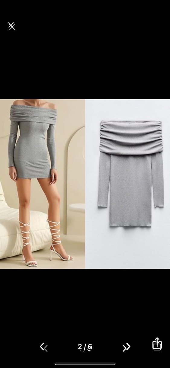 Gri, straplez, uzun kollu, kısa ve vücuda oturan bu mini elbise, yumuşak sentetik kumaştan yapılmıştır. Minimalist ve çağdaş tarzıyla romantik akşamlar için uygundur.