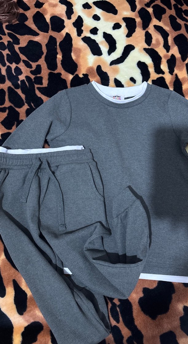 Gri renkte, uzun kollu ve bisiklet yaka, bol kesim kız eşofman takımı. Yumuşak sentetik kumaştan, rahat ve şık bir street wear tarzı sunar.