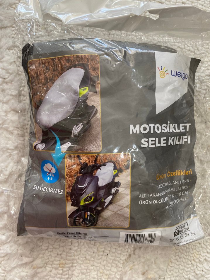 Gri renkli motosiklet sele kılıfı su geçirmez özellikte olup, cırt cırtlı ayarlanabilir bağlama sistemine sahiptir. Alt tarafı lastiklidir, ölçüsü 110x110 cm'dir. ️