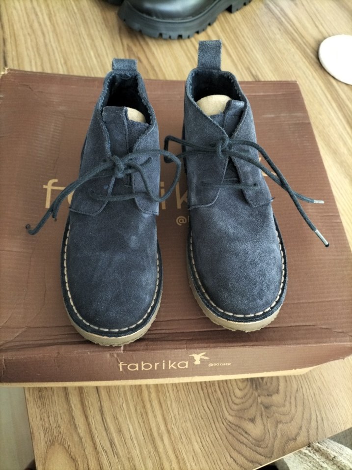 Zara markalı, gri süet malzemeden, bağcıklı ve normcore tarzda erkek çocuk ayakkabısı. Desensiz, mavi-gri tonlarında. az kullanılmış