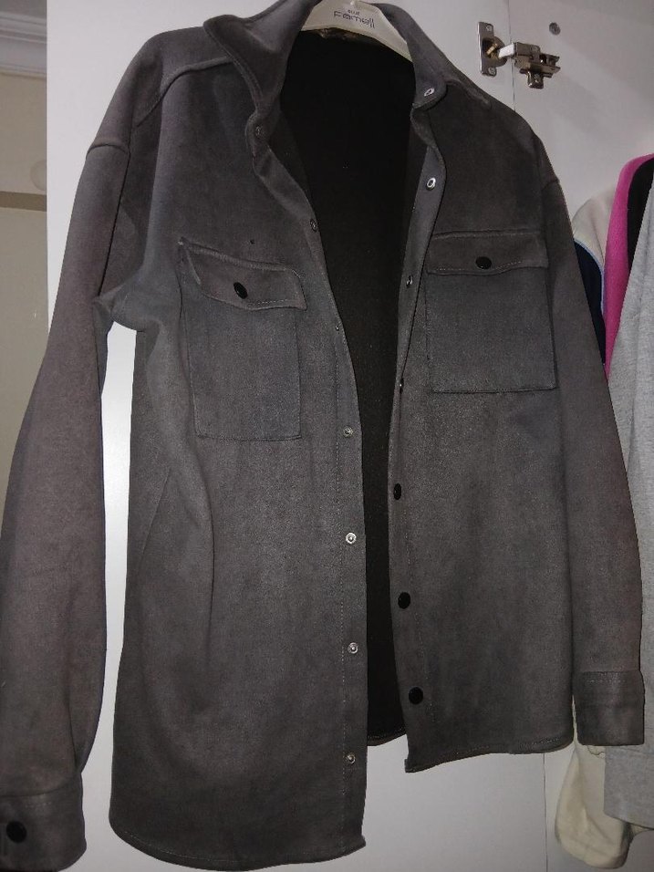 Gri Süet Düğmeli Kadın Ceket