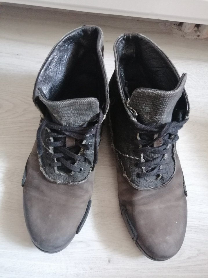 Gri süet erkek botları, tokalı detaylara sahip olup sokak stili ve karşı kültür tasarımını yansıtır, günlük kullanım için uygundur.
