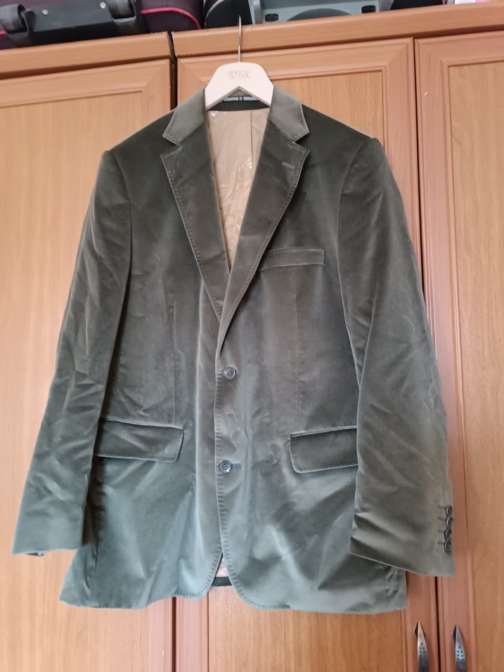 Gri süet malzemeden üretilmiş, düğmeli ve regular fit erkek ceket. Uzun kollu, midi boyda, klasik ve şık ofis stiline uygun.
