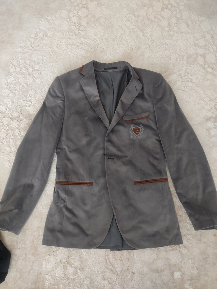 Gri Süet Erkek Ceket, Kadife Ofis Stil