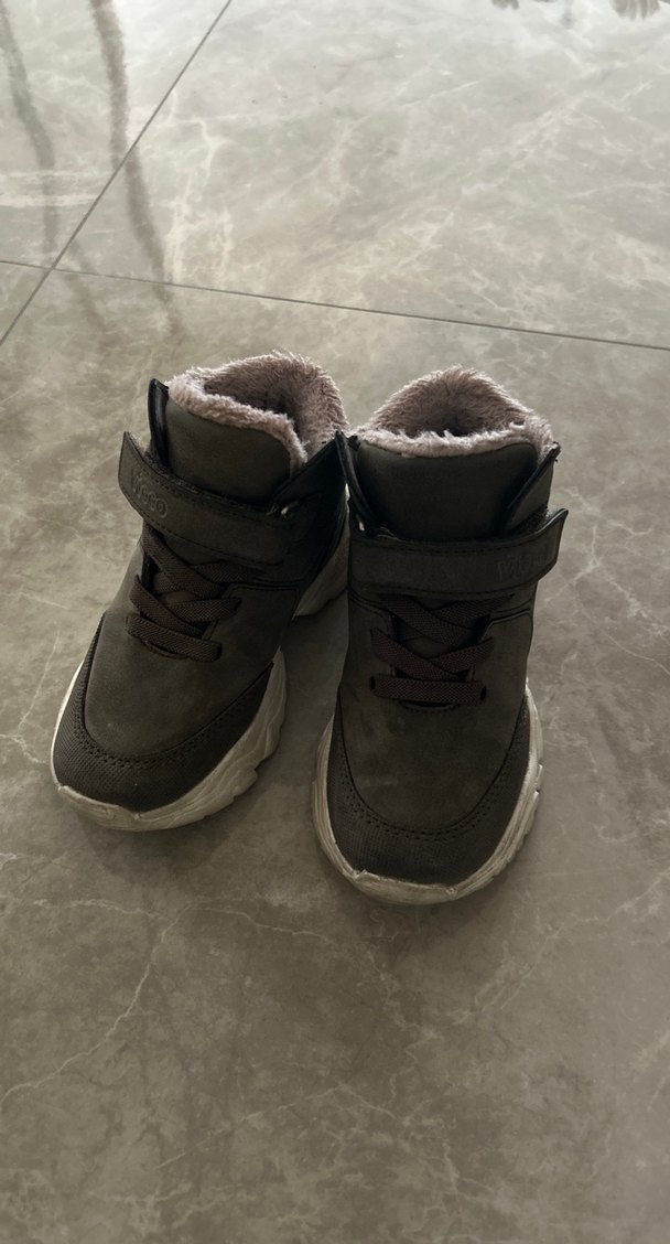 Gri süet malzemeden yapılmış, kürklü ve desen içermeyen erkek çocuk botları. Trendy ve rahat sokak stili için uygundur.
