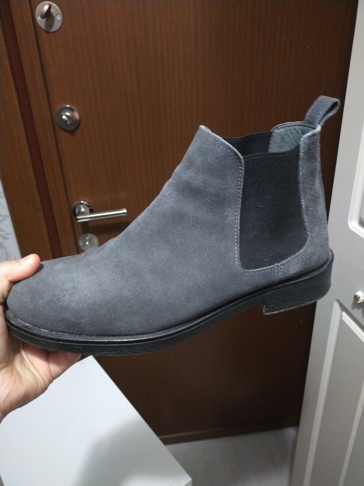 Gri süet malzemeden yapılmış, cırt cırt detaylı, desen içermeyen erkek botu. Sokak stili için uygun, günlük kullanıma idealdir.