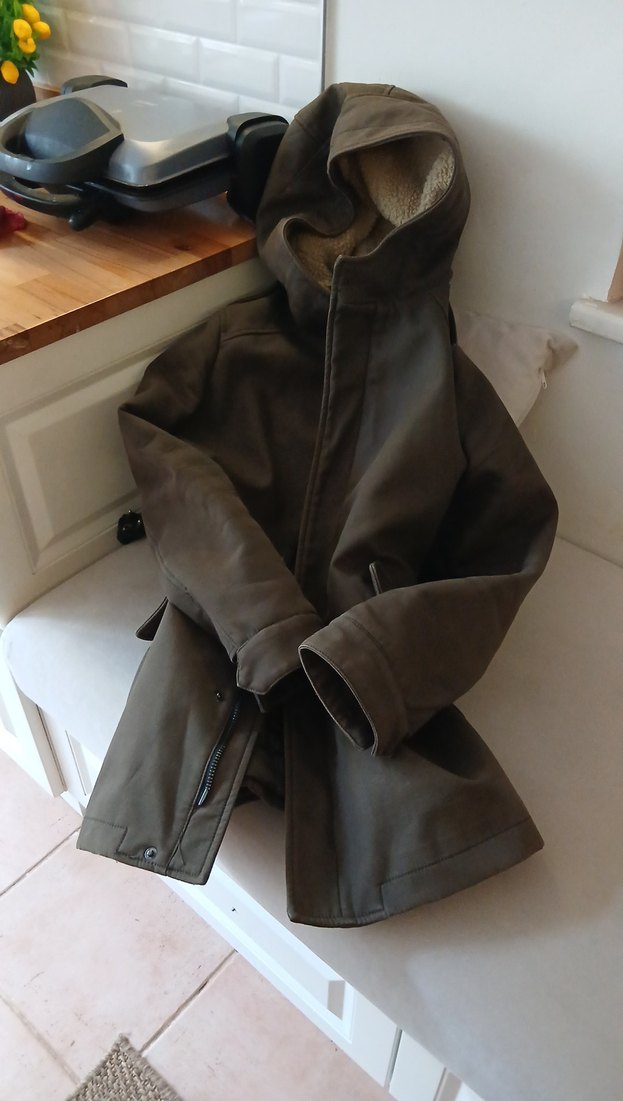 Gri süet kumaştan, kemerli ve kesimli erkek kabanı, sokak modasına uygun bir tasarıma sahiptir.