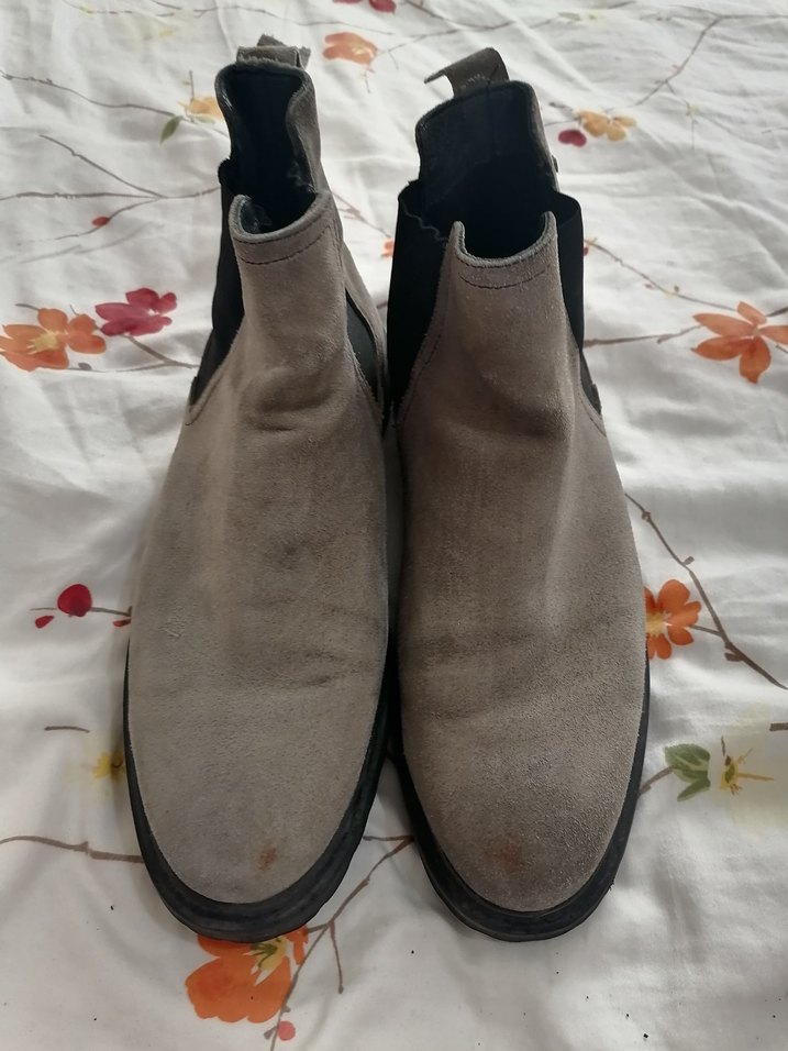 Gri renkte, desen içermeyen erkek botu rahat sokak stili için uygundur. Elle marka 44 numara. Renkte kullanımdan ötürü solma vardır.