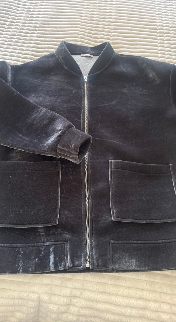 Gri süet kadın ceketi, fermuarlı ve uzun kolludur. Gevşek kesimi ve iki ön cepli tasarımıyla günlük sokak stiline uygundur. En62 boy 67