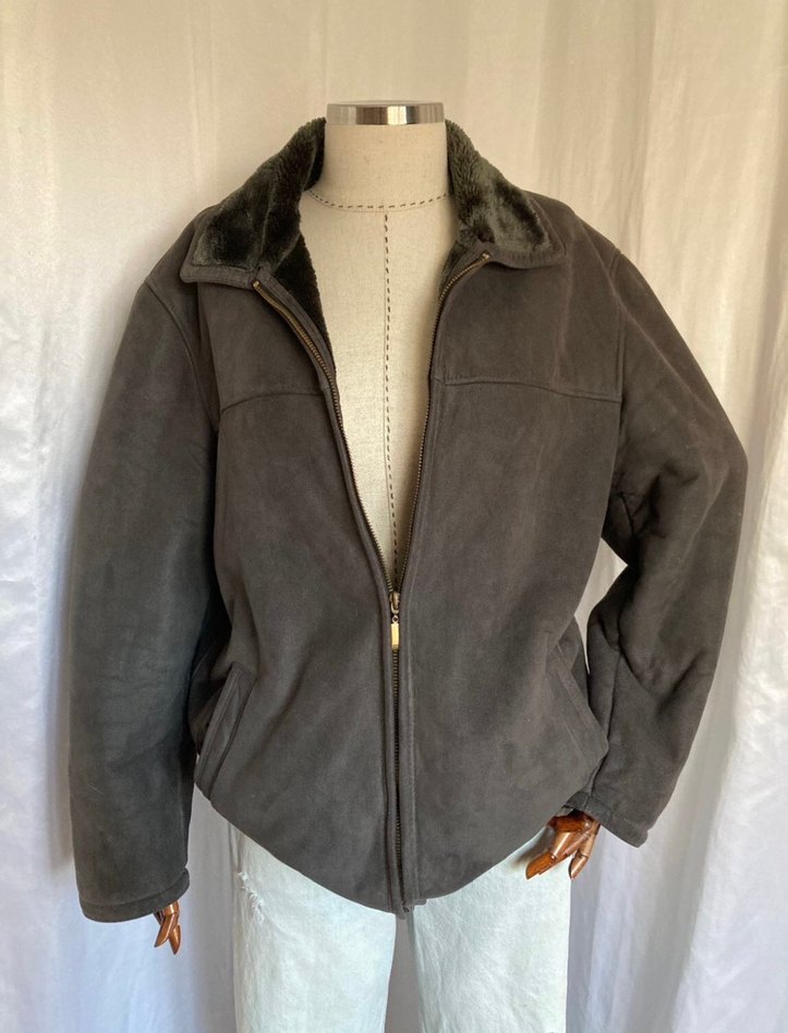 Gri süet dokulu, fermuarlı, yakalı kadın ceket. Salaş kesim, uzun kollu ve normal boyda, günlük kullanıma uygun rahat bir modeldir. İKİ CEPLİ İÇİ TÜYLÜ SÜET ÇEKET. Kusuru yok. S-M bedene uyumludur.
