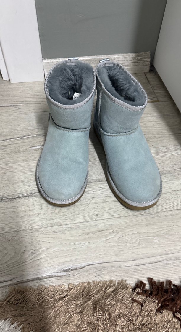 Gri süet kadın botlar, dolgu topuklu ve içi tüylü, günlük kullanım için sıcak ve rahat bir seçenek. ❄️