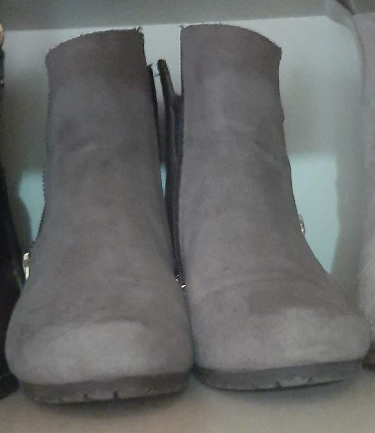 Gri süet kadın botları dolgu topuklu ve tokalıdır, rahat ve trend günlük stil sunar.