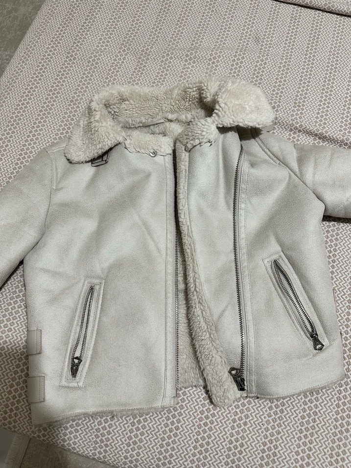 Gri süet kadın ceketi, kürk detaylı, dar kesim, kesik yaka ve uzun kolludur. Midi boyda ve fermuarlı ceplidir, rahat sokak stili için uygundur.