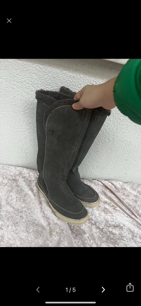 Gri Süet Kürklü İnce Topuklu Dizüstü Kadın Çizme