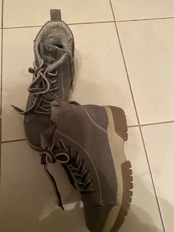 Gri süet, kürklü detaylı kadın dolgu topuk bot. Rahat ve desensiz tasarımıyla gündelik kullanıma uygun, trend ve sade bir stil sunar. Love our planet marka