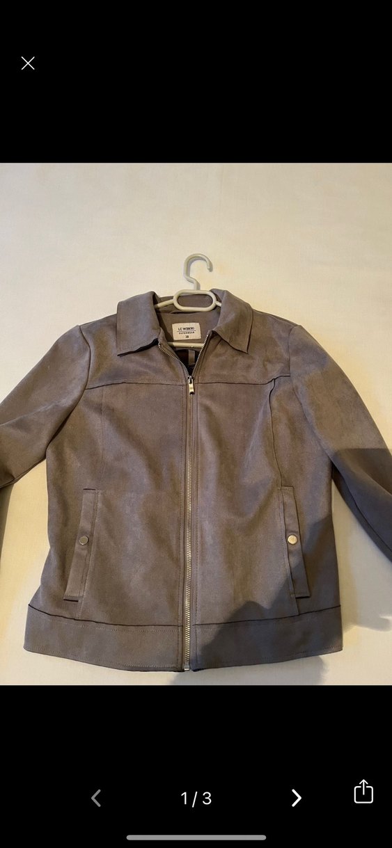 Gri suet midi ceket, çıtçıtlı cepler ve fermuarlı ön detaylara sahiptir. Uzun kollu ve rahat kesimli, gündelik sokak stili için uygundur.