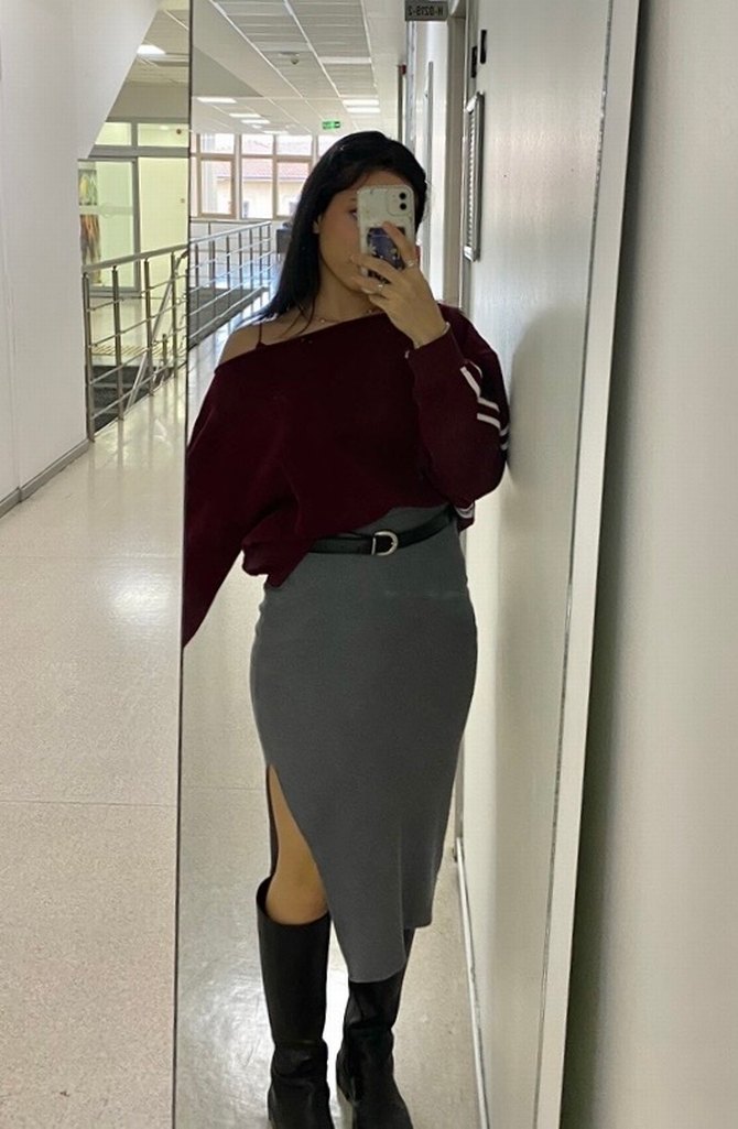 Gri süet midi kalem etek, bol kesim ve yan yırtmaç detayıyla günlük kullanıma uygun, zahmetsiz şıklık sunar. Trendy casual sokak stiline uygundur.