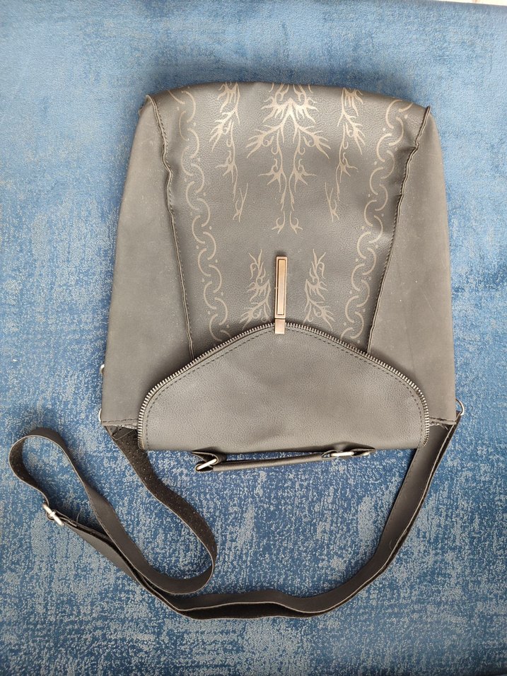 Gri süet malzemeden yapılmış, nakışlı ve tokalı bohem tarzda kadın çantasıdır. Minimalist ve günlük kullanıma uygundur.