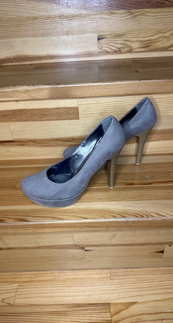Gri Süet Platform Topuklu Kadın Stiletto