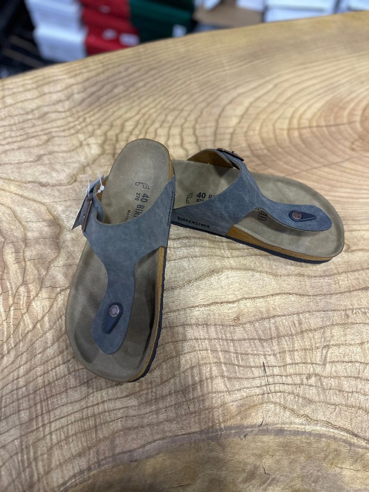 Gri süet malzemeden, tokalı parmak arası birkenstocks ve bohem tarzda, günlük rahat kullanıma uygun. 40 41 43 numara mevcut