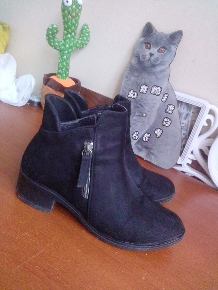 Gri Süet Tokalı Blok Topuklu Kadın Bot