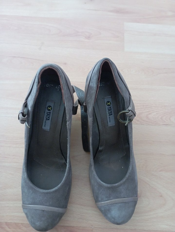 Gri Süet Tokalı Topuklu Kadın Ayakkabısı