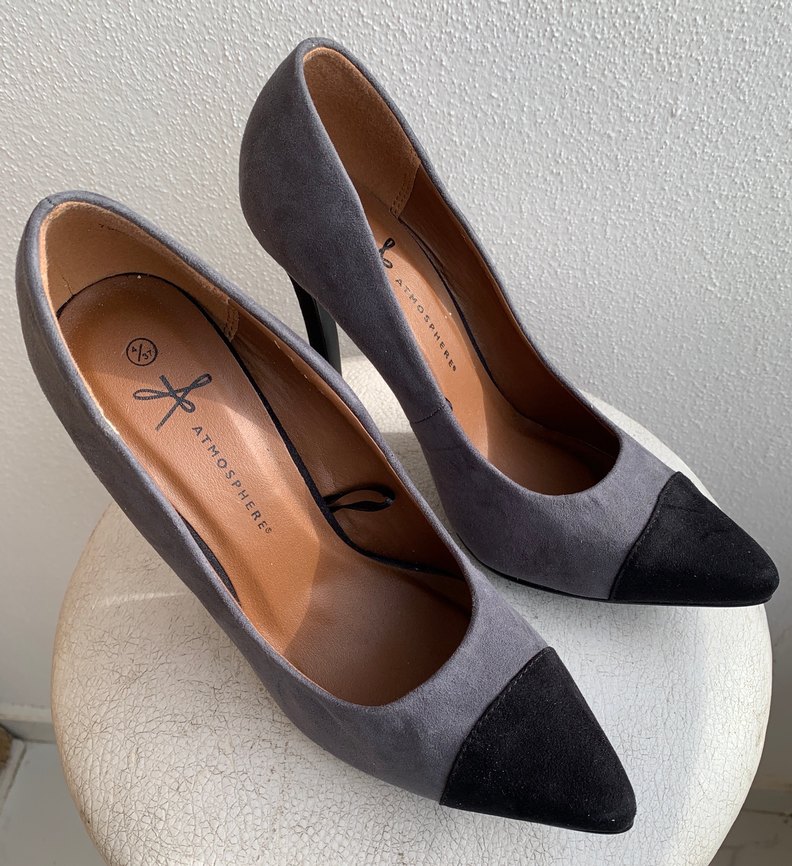 Gri süet stiletto. İç astarında minik soyulma var. Bu yüzden ucuz. Neredeyse giyilmedi.37 No, Topuk boyu:11 cm.Yeni sahibine hayırlı olsun.