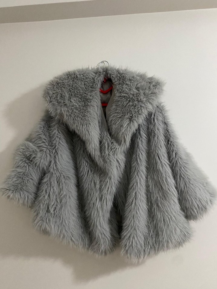 Gri suni kürk peluş ceket