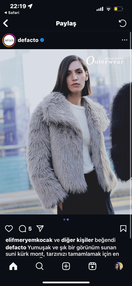 Gri renkte, midi boy, bol kesim ve yaka detaylı suni kürk ceket. Uzun kollu, yumuşak dokulu ve gündelik sokak stiline uygun.