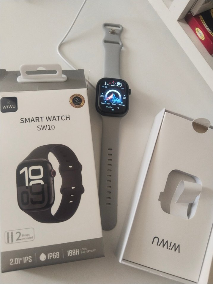 Gri SW10 akıllı saat, 2.01 inç IPS ekran, IP68 su geçirmezlik ve 168 saate kadar pil ömrü sunar. Rahat kayışlı şık tasarım. ⌚