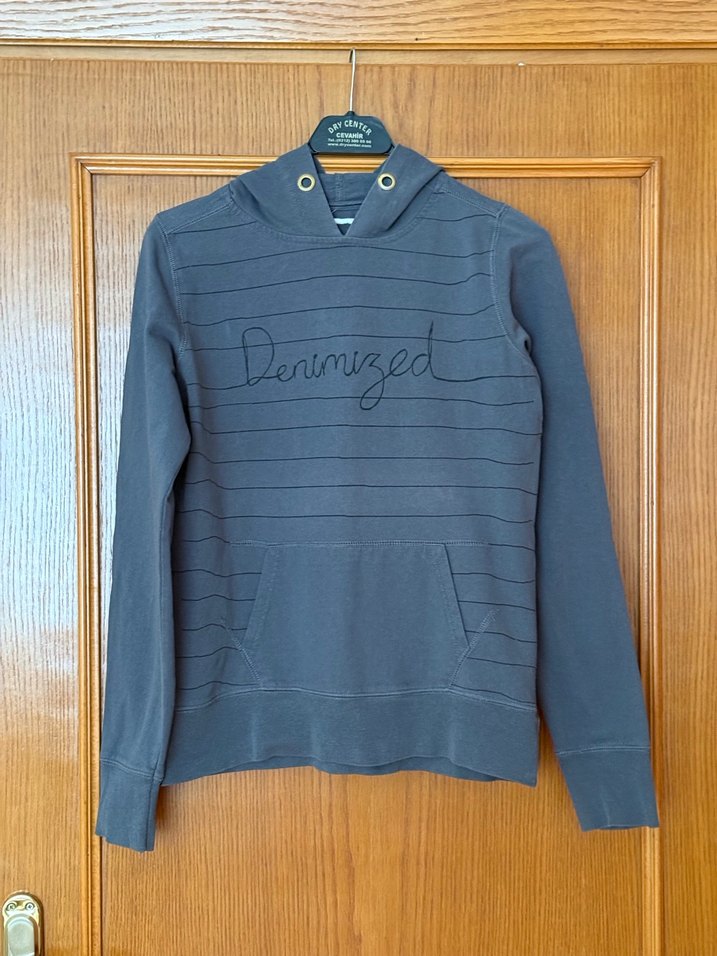 Gri renkte, kapüşonlu sweatshirt, uzun kollu ve bisiklet yaka, rahat kumaştan, günlük kullanıma uygun rahat kesim.