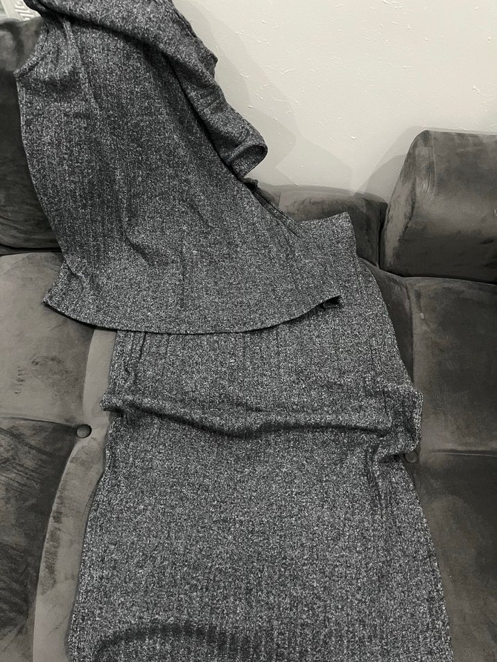 Gri renkte etek ve üst takım.