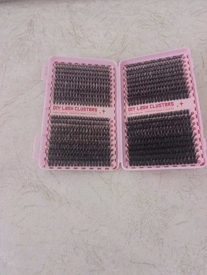 Pembe kutuda gri takma kirpik kümeleri, kendi kendinize uygulama için uygundur. Doğal bir görünüm sağlar.