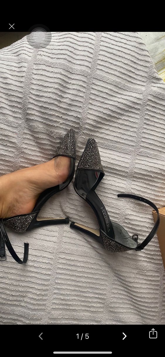 Taş detaylı desenli, tokalı siyah ince topuklu kadın ayakkabısı. Cesur ve gösterişli stil ile romantik akşamlar için uygundur.