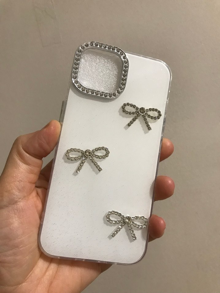 Gri Taşlı 13-14 Fiyonk Detaylı Beyaz Telefon Kılıfı
