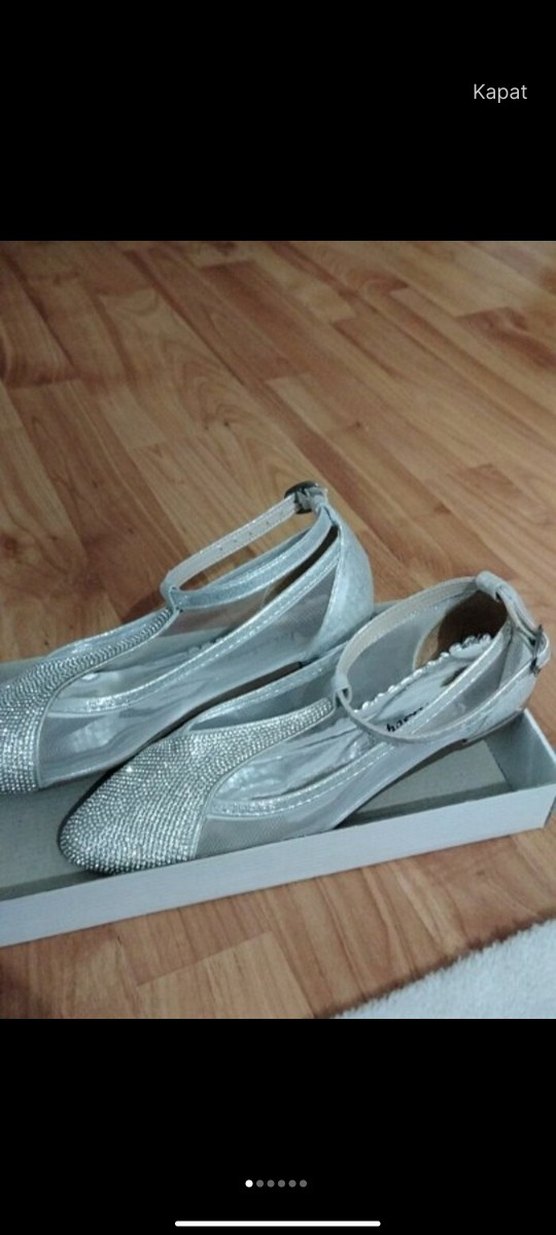 Beyaz ve gri renklerde, dolgu topuklu, tokalı kadın abiye ayakkabılar. Düğün ve şık tarzlar için uygundur.