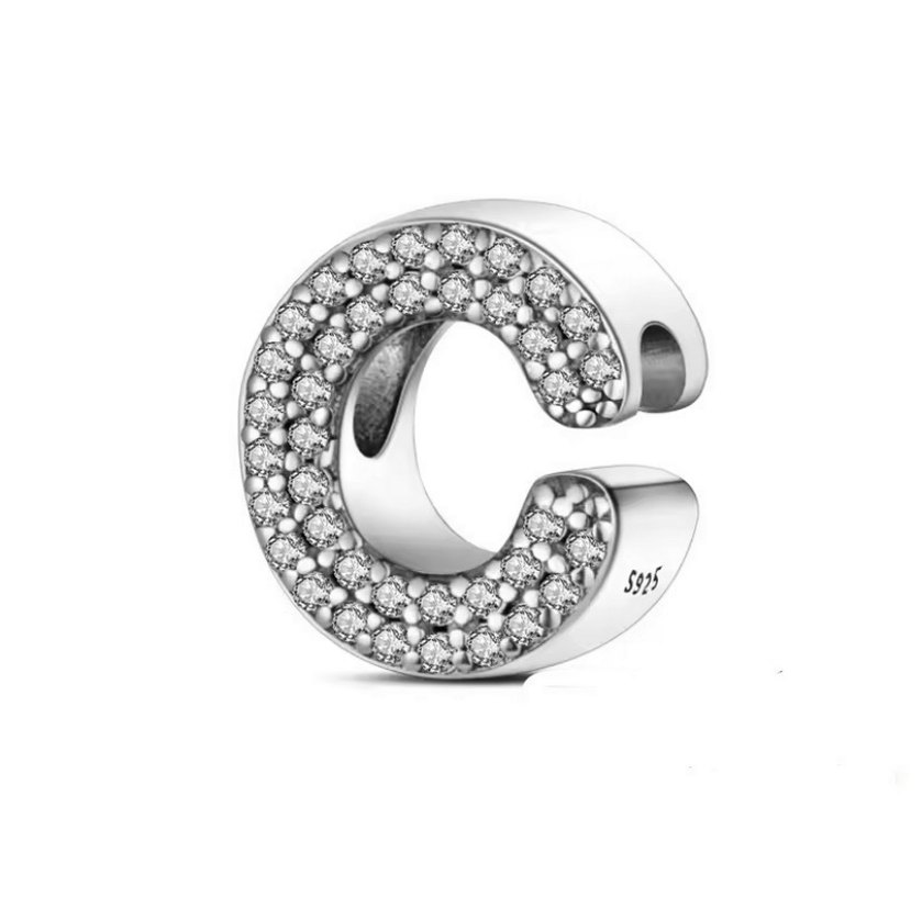 Gri taşlı C Harfi Charm