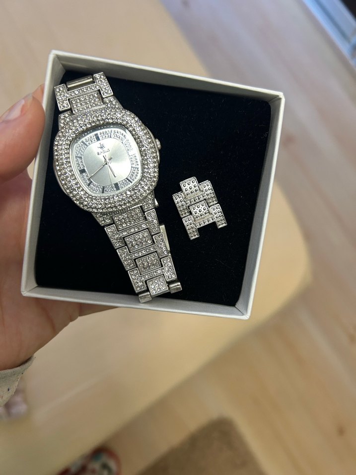 Gri taşlı bilekliği ve küçük kare kadranı ile kadın saat, çağdaş ve ışıltılı bir görünüm sunar. ⌚