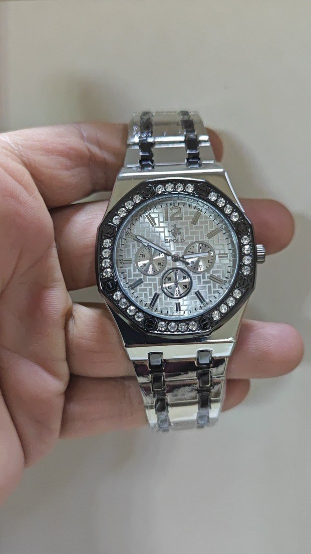 Gri renkli, taşlı çerçeveli ve tokalı kayışlı kadın kol saati, çağdaş stil ile klasik zarafeti bir araya getirir. ⌚
