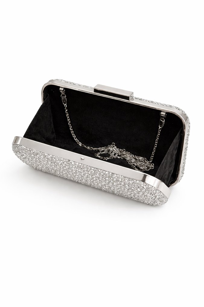 Gri Taşlı Zincir Detaylı Metal Clutch