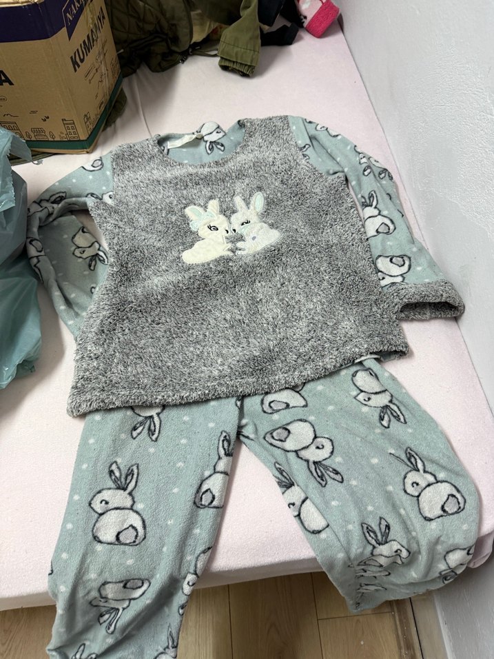 Gri tavşan desenli, yumuşak ve sıcak kumaştan pijama takımıdır. Üstü tüylü dokuda ve önünde iki tavşan figürü bulunur.