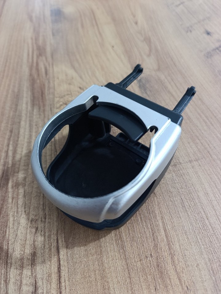 Araç içinde kullanılmak üzere tasarlanmış gri telefon tutucu, sağlam taban ve güvenli kavrama sağlar.