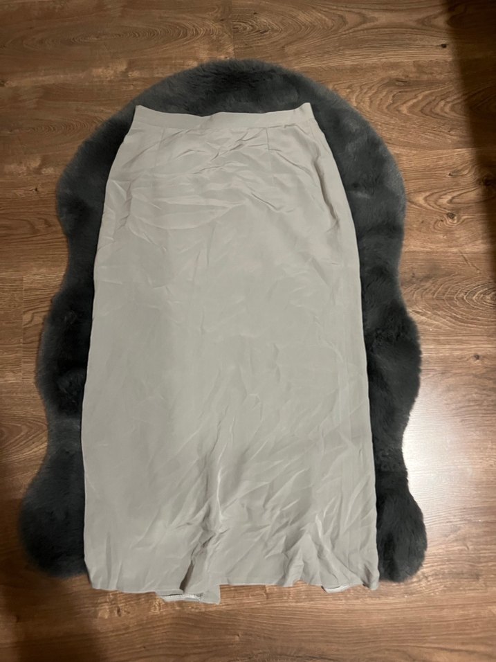 gri renkte, terzi dikimi , keten kumaştan yapılmış ve uzun kesim, vücuda oturan kadın eteği. Günlük kullanıma uygun sade ve rahat bir stil sunar. terzi dikimi olduğu için etiketi yoktur hiç giyilmemiştir.